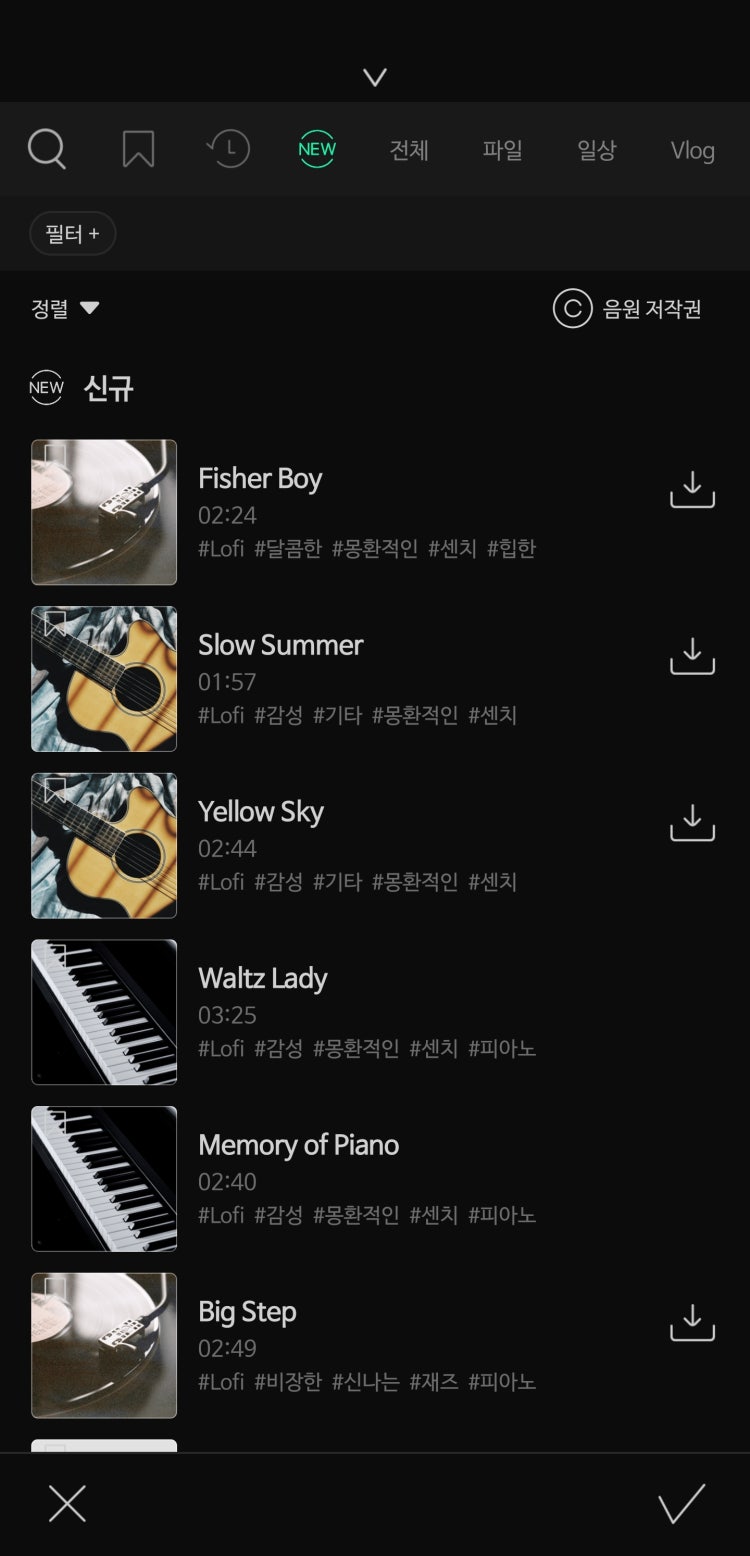 자막도 다양하고 배경음악도 저작원 무료로 엄청 징르별로 많이 제공됩니다. 특히 편집이 스마트폰으로도 손쉽게 되요.