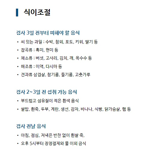 대체로 3일 정도 식단을 관리를 하면 장정결이 잘 된다는 이야기입니다