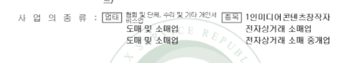 첨부된 이미지 업태 종목으로 사업자를1개더 발행했습니다.
