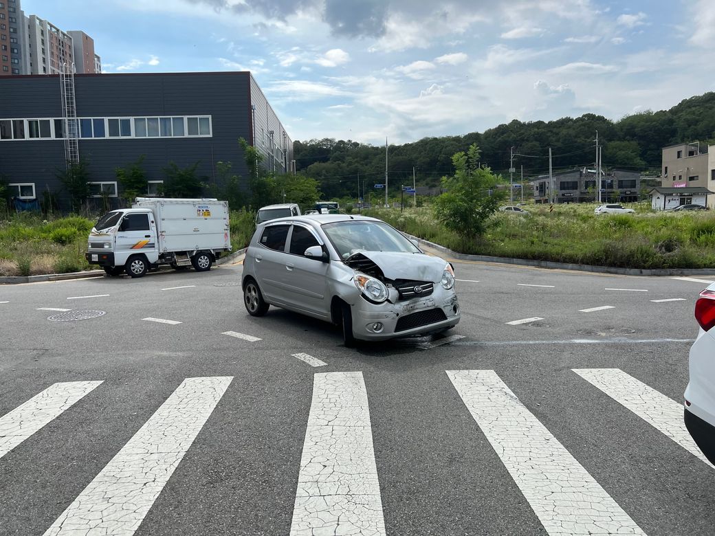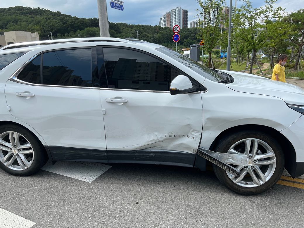 생각보다 가속도를 붙여서 오는 우측 차량에 저의 차 우측 측면을 부딪혔습니다.