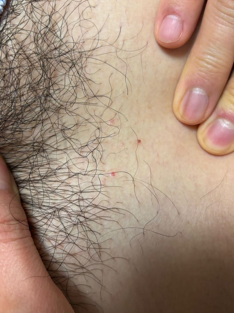 안녕하세요. 저는 남자입니다. 일주일 전부터 배꼽 아래 성기 털 윗부분 경계에 무언가 6개 정도 생겼습니다. 이것들이 생긴지 일주일 뒤인 어제 손톱으로 짜보았는데 투명한 물이 나오고 뒤이어 피가 나온뒤 피딱지가 앉았습니다.