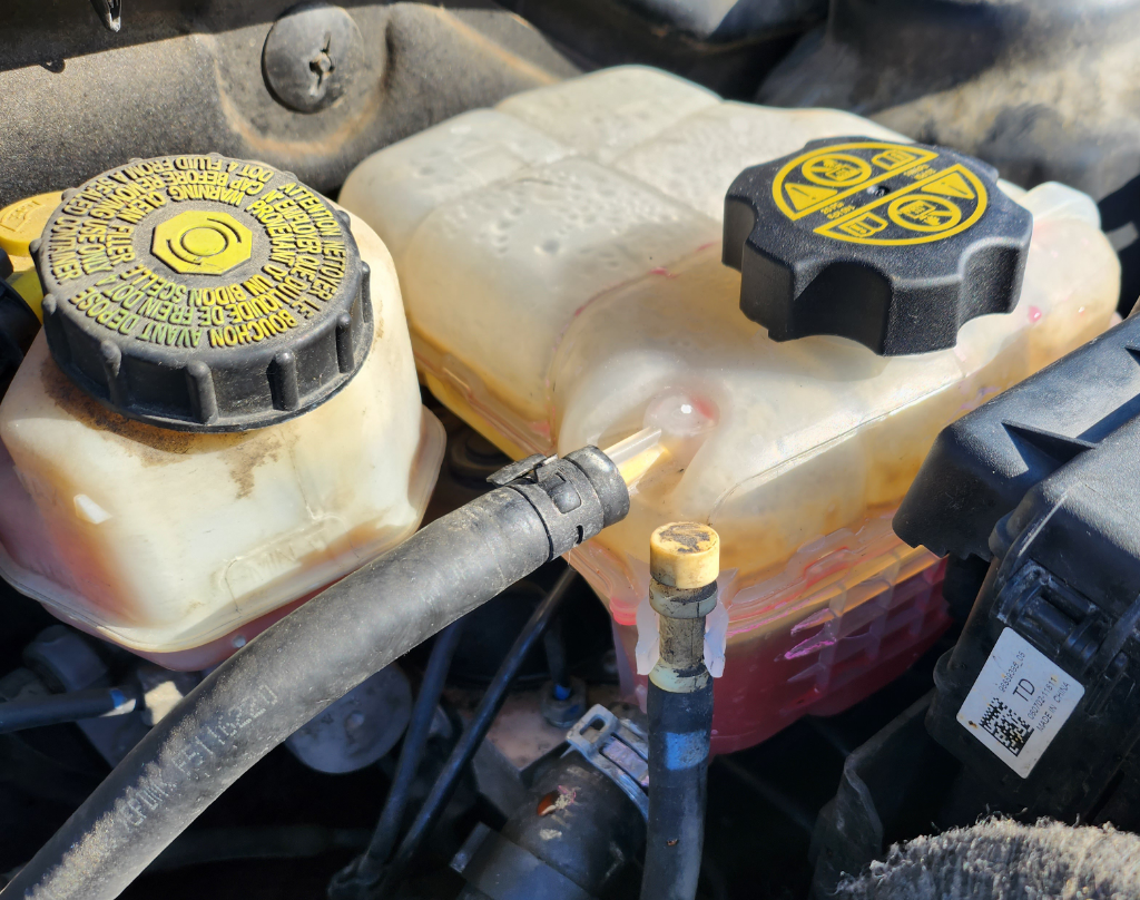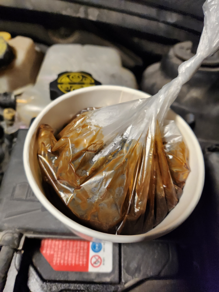 4. 더 많은 오일양 확인되어 주사기로 제거진행, 냉각수 추가보충함, 누유는없음