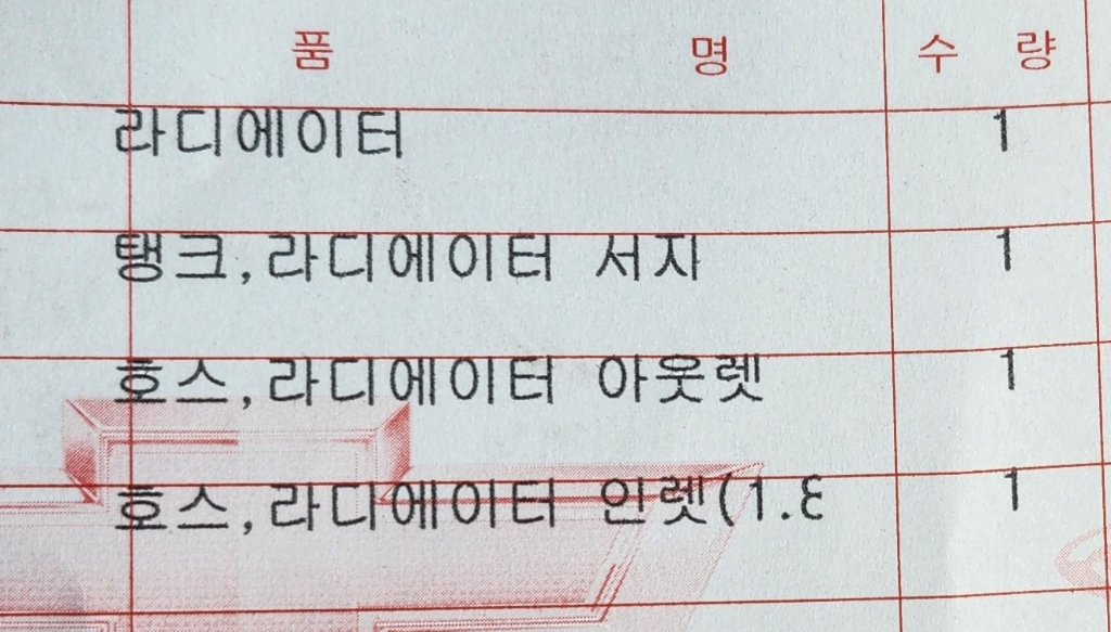2. 라디에이터 부품 일부교체,