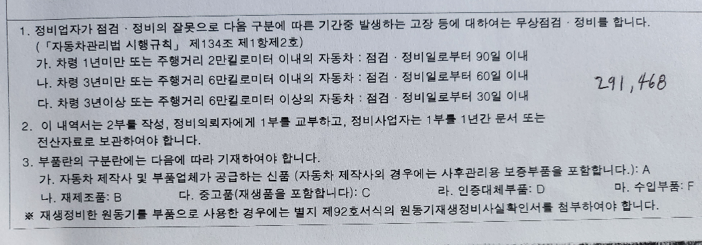 (아래는 정비명세서 하단부 내용)