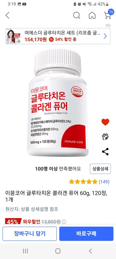 l트립토판 영양제는 아니구 그냥 피부관련콜라겐 글루차티온이 주된 성분으로 된 영양제인데 l트립토판이 함유되어 있네요 .주원료는 아니구 부원료인거 같습니다.