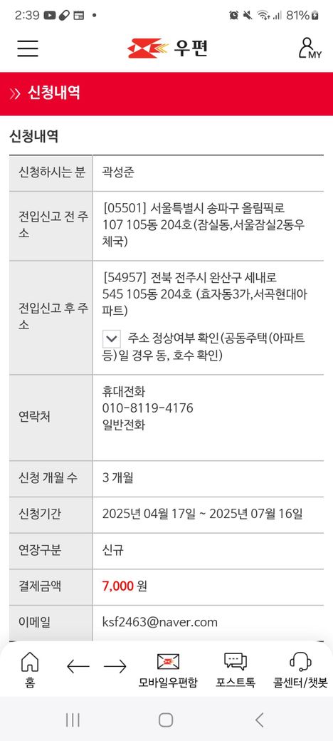 살던곳으로 우편물이 오도록 하셨네요 전입신고는