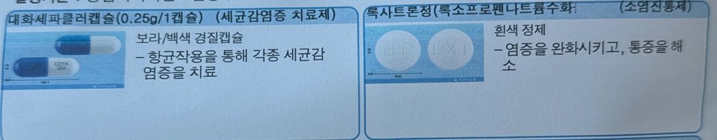 사진 속 대화세파클러캡슐과 록사트론정을 경구피임약과 함께 복용하면 피임 효과가 감소하는 등 영향이 있을까요?