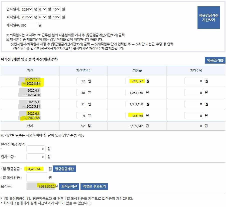질문 1) 일할계산된 3/10~3/31, 6/1~6/9의 급여가 이게 맞나요?
