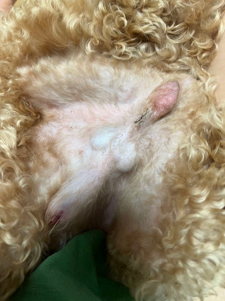수컷 강아지 중성화 수술 후 저렇게 흰색 볼록한게 두개 생겼다가 금방없어졌다가 하는데요.