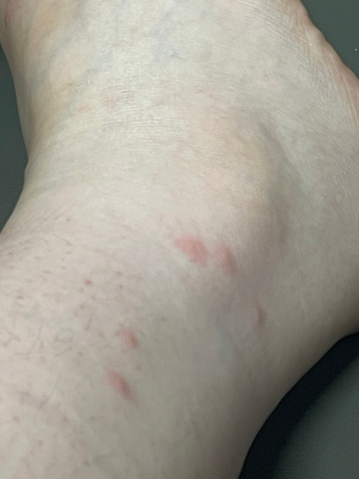 사진의 소견만 보고 구체적이고 정확하게 무엇에 물린 자국인지 파악 및 판단이 가능하지는 않습니다만, 알러지 보다는 물림에 의한 소견으로 보이긴 합니다.