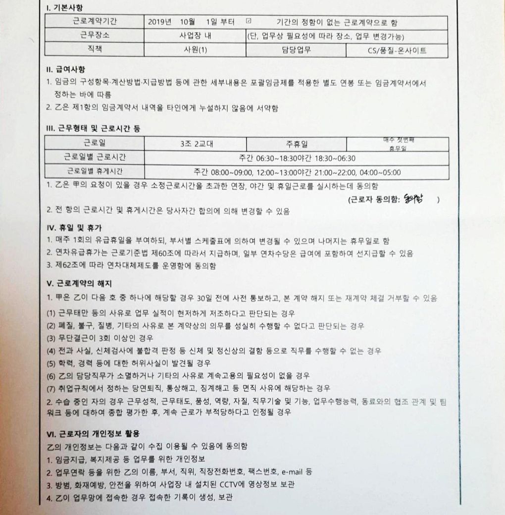 연봉계약서, 채용공고 때는 3조 2교대 근무였지만,
