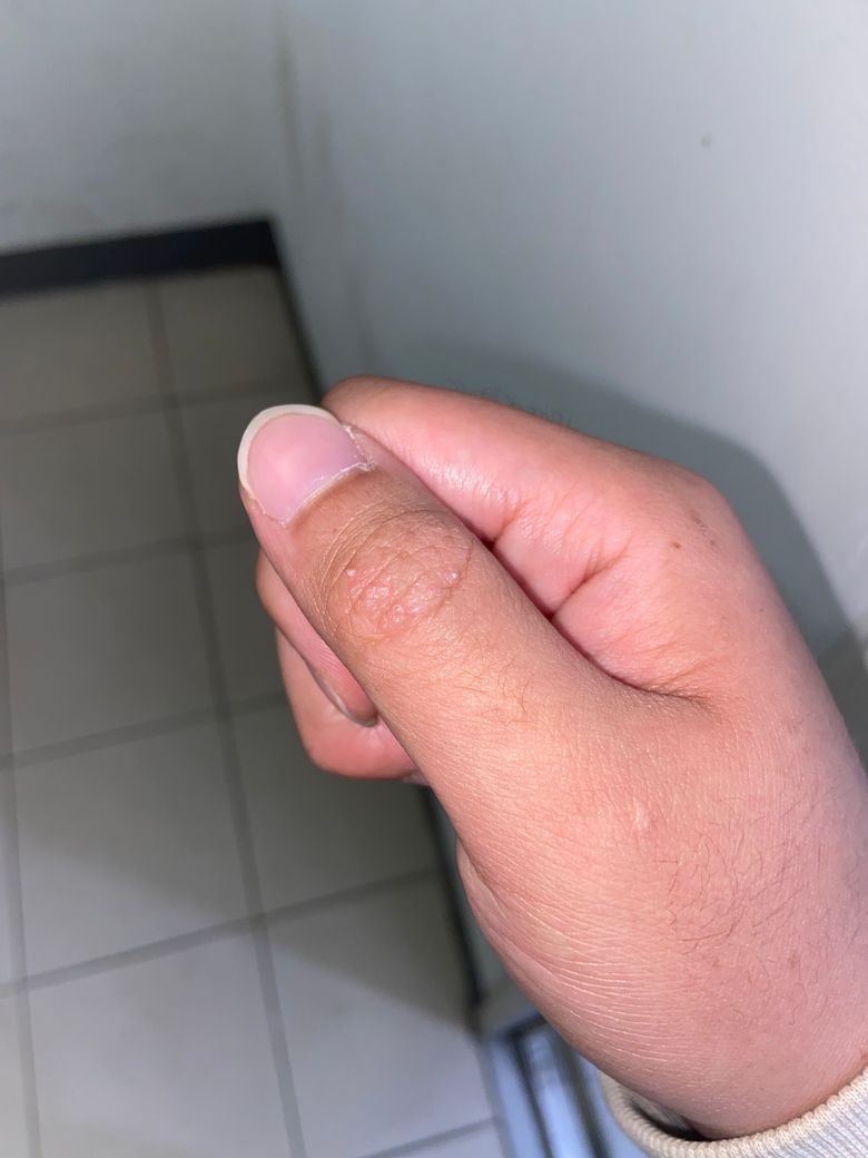 엄지손가락 쪽에 붉은 반점?이 오돌토돌하게 올라오고