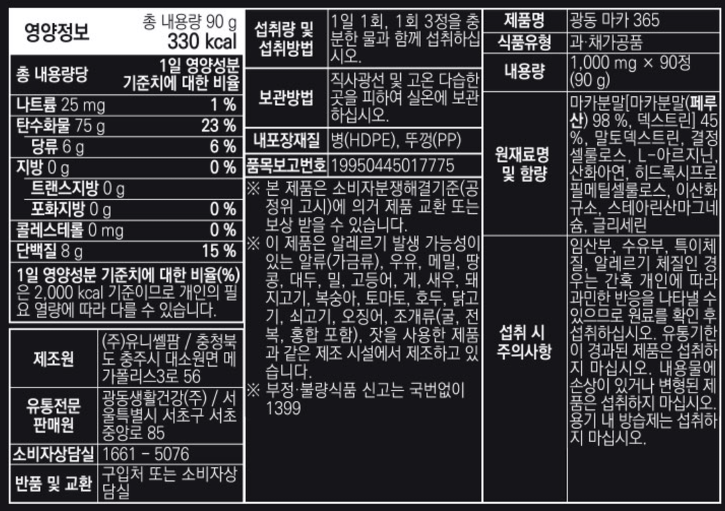 (사진 상 마카의 아연함유량이 보이지 않는데, 잘 살펴보시기 바랍니다.)