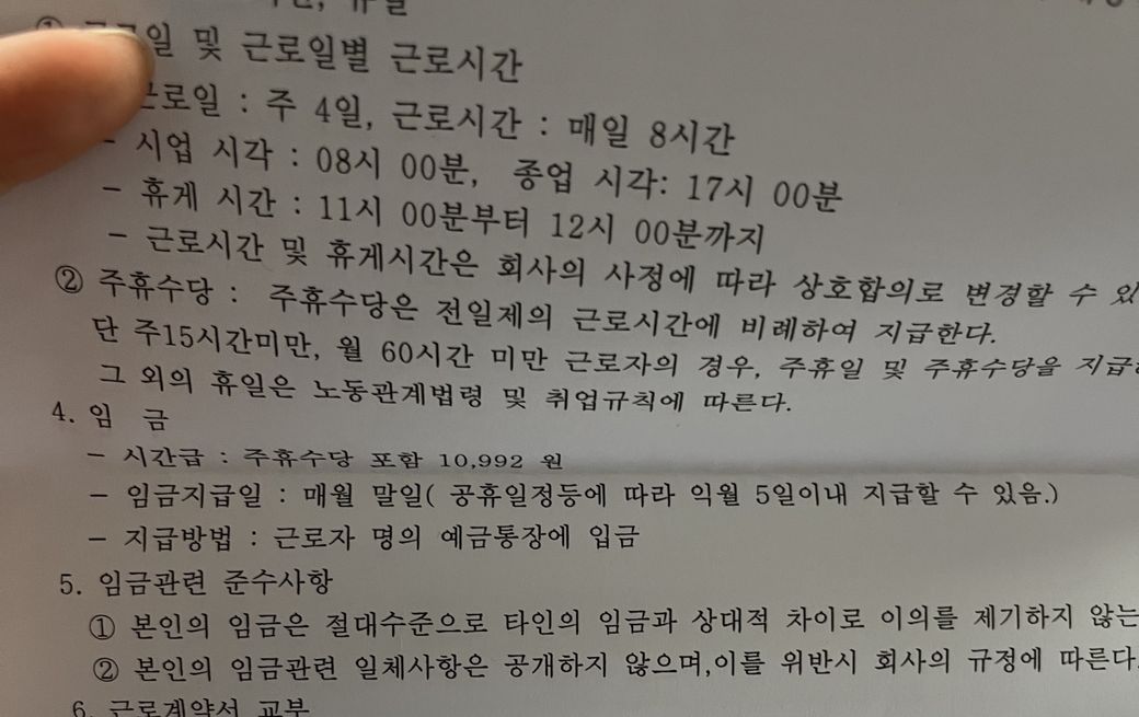 질문자님의 질문내용과 근로계약서상의 근로조건과 달라 답변이 드리기 어려운 점이 있습니다.