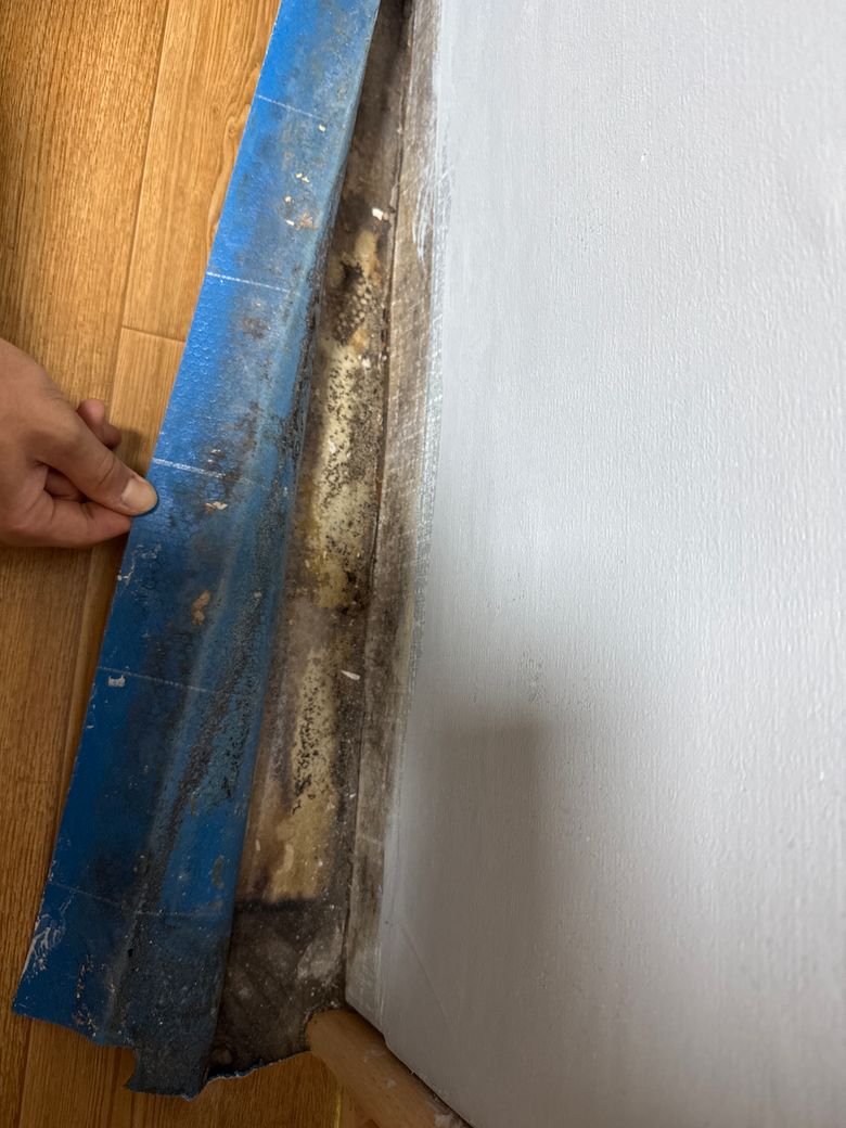 계약당시에는 환기를 해두셨는지 냄새가 안났지만 실제로 입주한 날 냄새가 너무 심해서 장판을 들쳐보니 곰팡이가 전체적으로 되어있습니다.