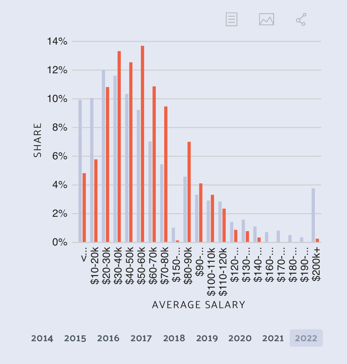여기서 미국 승무원 고용 및 임금 관련 통계랑 그래프를 확인할 수 있어요