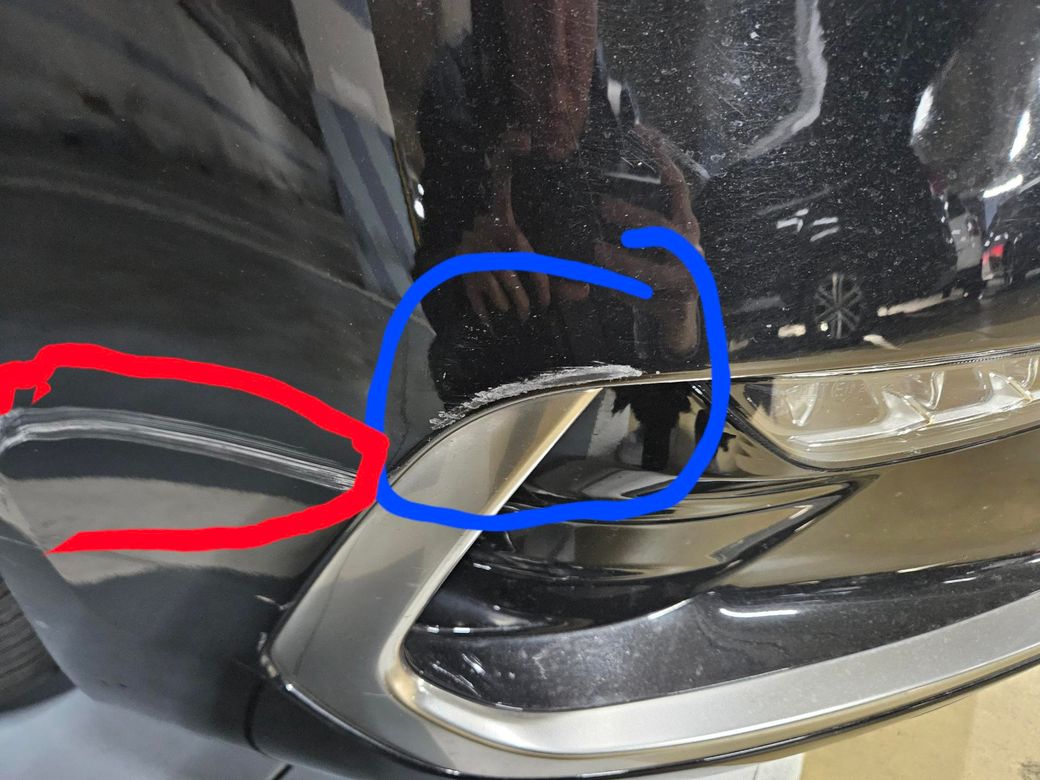 파랑 부분이 제가 긁은 거고 빨간 부분은 원래 있었던 기스 같습니다
