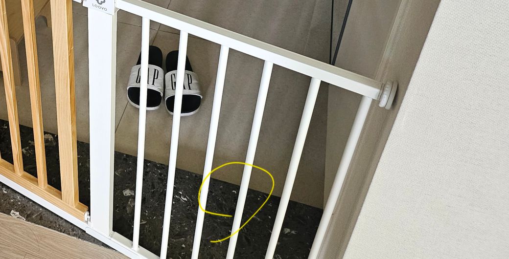 혼자 놀다가 두번째 사진에 있는 안전문에 다리를 집어 넣었다가 1분이내로 끼여서 빼줬어요.