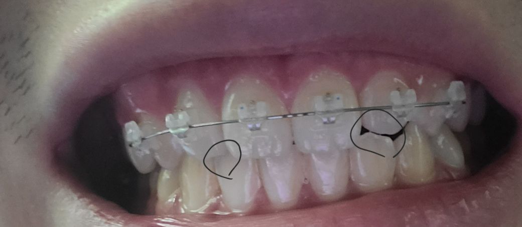 오른쪽 측절치 전방이동중이라서 공간이 생겼습니다 근데 왼쪽이 앙다물면 치아가 약간 부딪힙니다