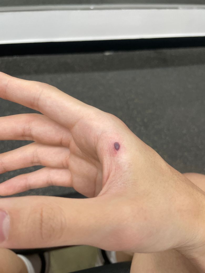 살이 찝혀서 피부 안에 출혈이 났습니다