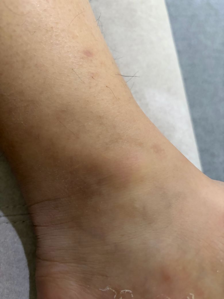 환자분께서 발목이 삐고, 2주가 지났는데도 통증이 강하고 욱신거린다면 단순 1도 발목 염좌보다는 2도 이상 인대 손상 가능성을 우선 고려해야 합니다. 특히 바깥쪽 인대인 전거비인대(anterior talofibular ligament)나 종비인대(calcaneofibular ligament) 부분 파열이 흔합니다. 사진상 멍과 부종이 약간 남아 있는 점도 이를 시사합니다.