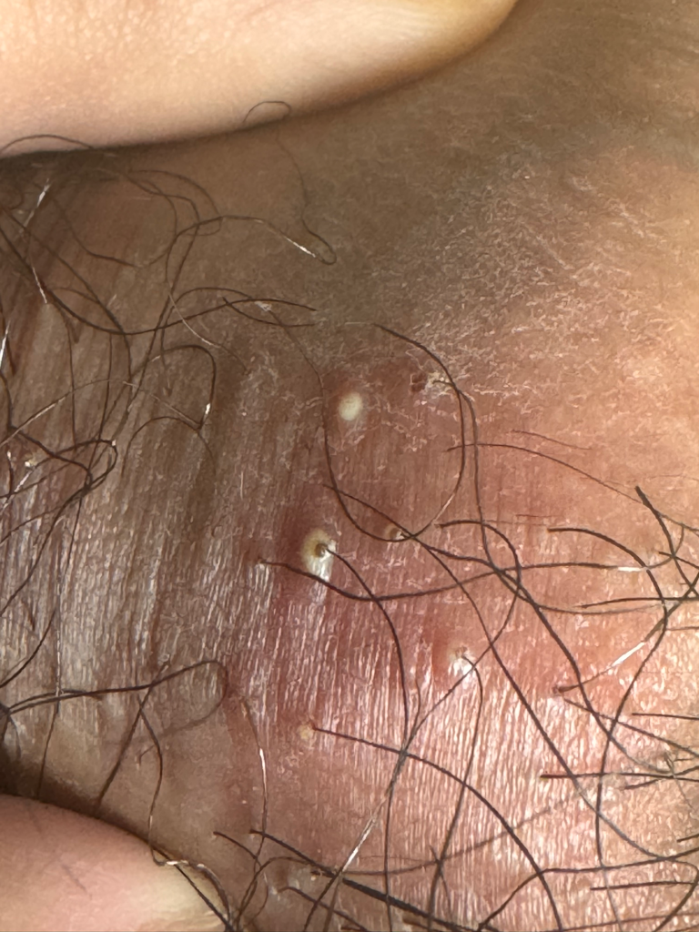 모낭염이 가장 의심이 되지만, 성관계 후 발생한 것이라면 성매개 질환 또한 의심이 되기 때문에 비뇨기과에 내원하시어 STD검사 까지 진행 후 약물처방을 받으시는 것을 추천드립니다.