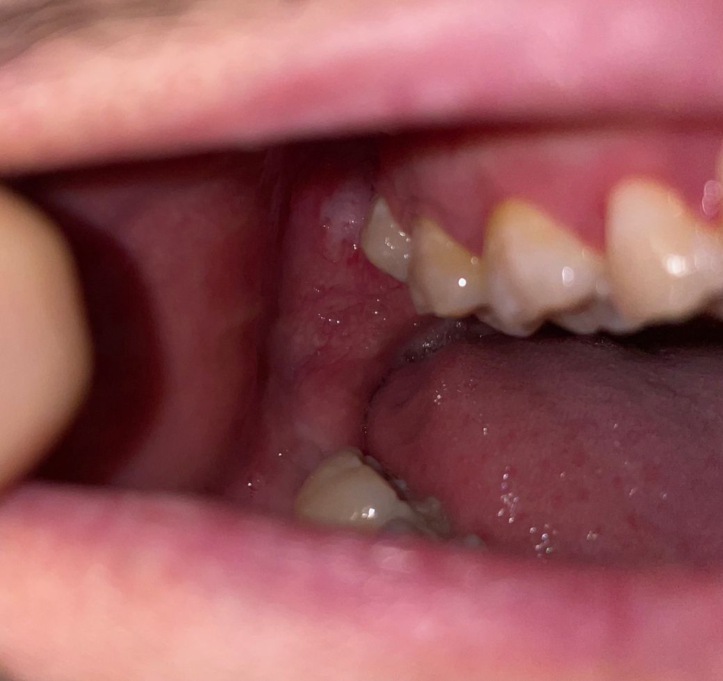 사랑니 뒤쪽에 구내염같이 하얗게 뭐가생긴뒤로 8개월넘게 지났는데 안낫습니다 안사라지니 불안해서 여쭤봅니다