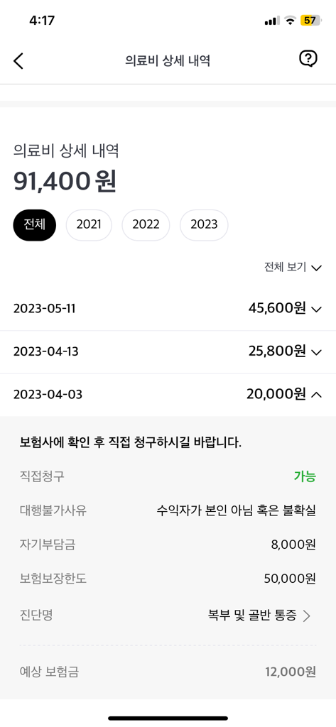 병원비 영수증에는 어떠한 치료에 대해서 얼마의 금액이 적용되었는지만 나옵니다.
