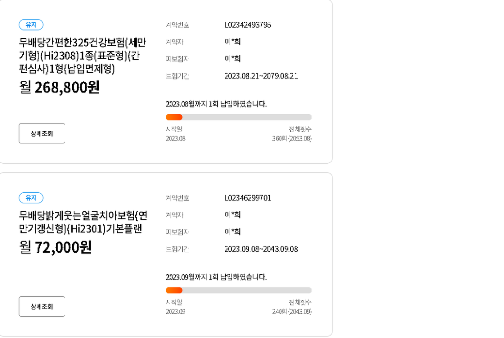 보험 가입 납부 금액 및 보장내역 이정도가 .. 맞는가요 ?!