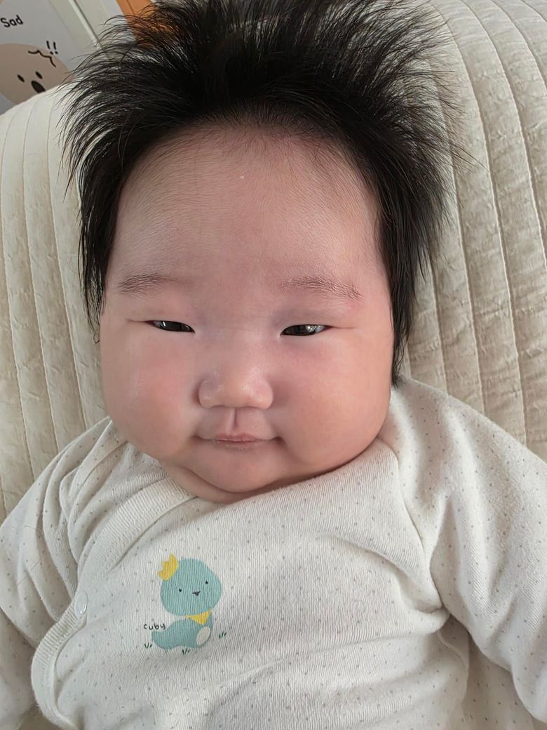 볼살이 통통하고 이목구비가 또렷해서 정말 사랑스럽네요. 눈빛도 또렷해서 앞으로 더 예쁠 얼굴입니다. 😊