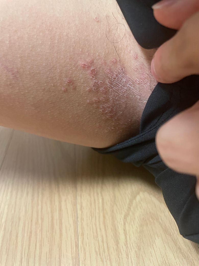 땀이 많은 체질이고 해당 부위가 간지러워 하루정도 긁은 것 같습니다. 대상포진인가요??