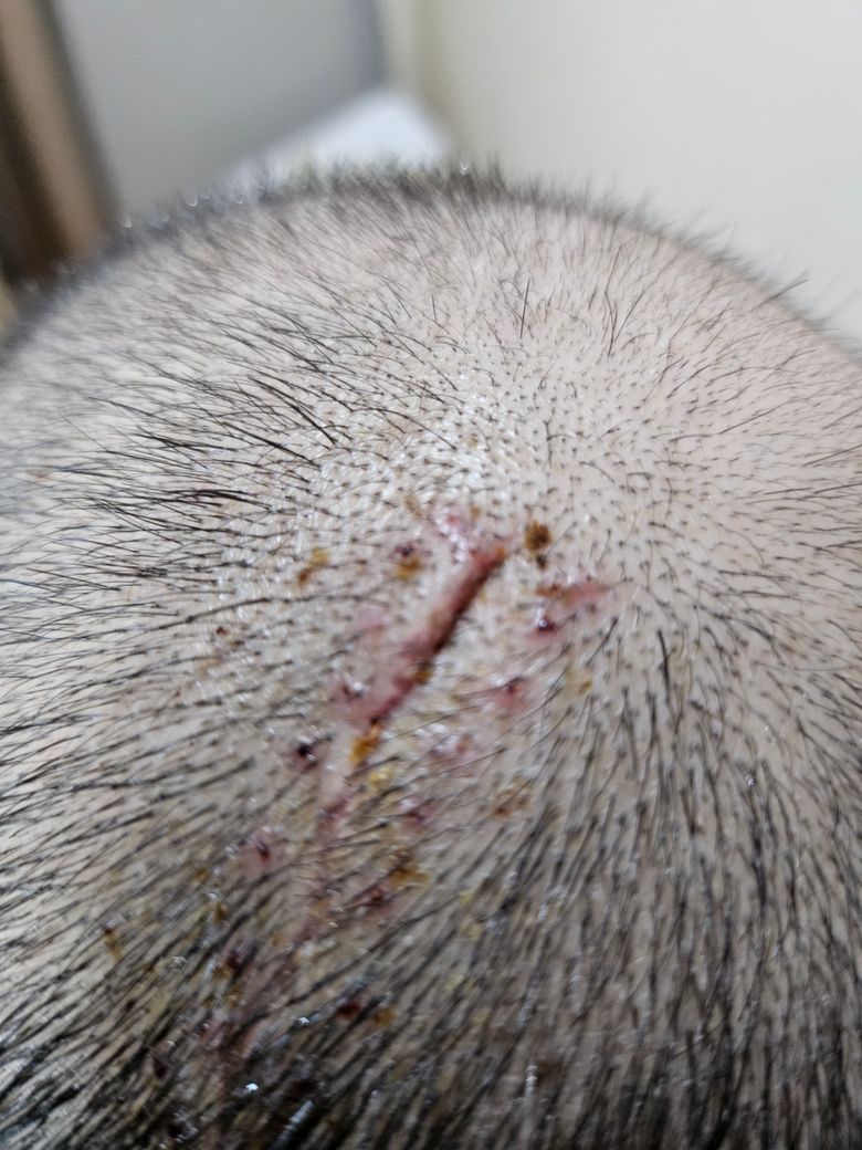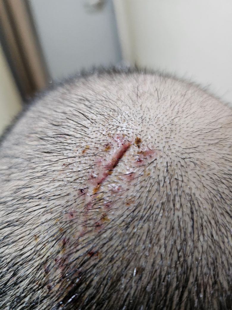 머리 찢어짐 스테이플러 11후 제거 상처가 이상해요