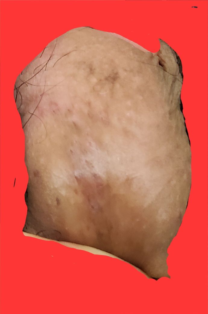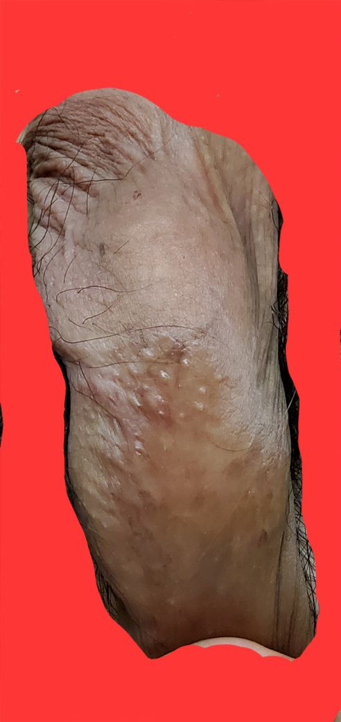그리하여 음경의 기둥 부분 색깔이 어느새 아래의 사진처럼 얼룩덜룩해 졌는데요,