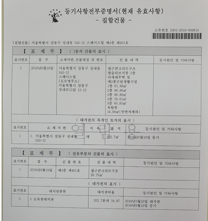 *첨부자료 : 집합건축물대장1,2 토지등기부등본1,2 집품보증금리포트1,2 부동산플래닛1 공시지가1 입니다.