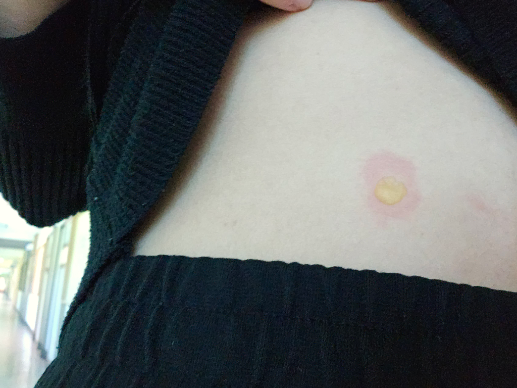 벌레에 물렸을 가능성 및 대상포진 등의 가능성도 있기 때문에 가까운 피부과에 내원하시어 정확한 진단을 받아보시는 것을 추천드립니다.