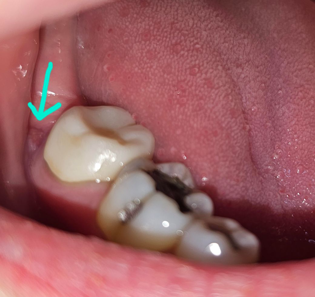 맨 뒤쪽 치아 쪽 잇몸이 언제부턴가 이렇게 되었습니다. 보통 잇몸 쪽 문제가 생기면 며칠 있다가 금방 회복되는데 이건 몇달 동안 지속된 것 같습니다.