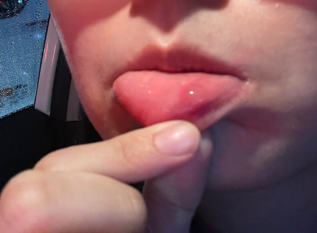 입술의 점액낭종 소견으로 보입니다. 양성 병변이며 보통 스스로 호전되는 경과를 보이기 때문에 너무 걱정할 필요는 없습니다만, 크기가 너무 크거나 하는 등 원인에 의해서 스스로 좋아지지 않는다면 제거 시술 또는 수술을 받아야 할 수 있습니다.