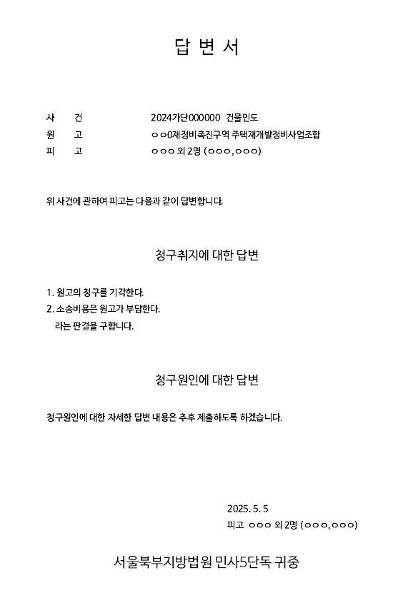 재개발 정비 사업 조합에서 제기한 소송의 피고측 답변서 작성과 제출 방식에대한 문의 드립니다