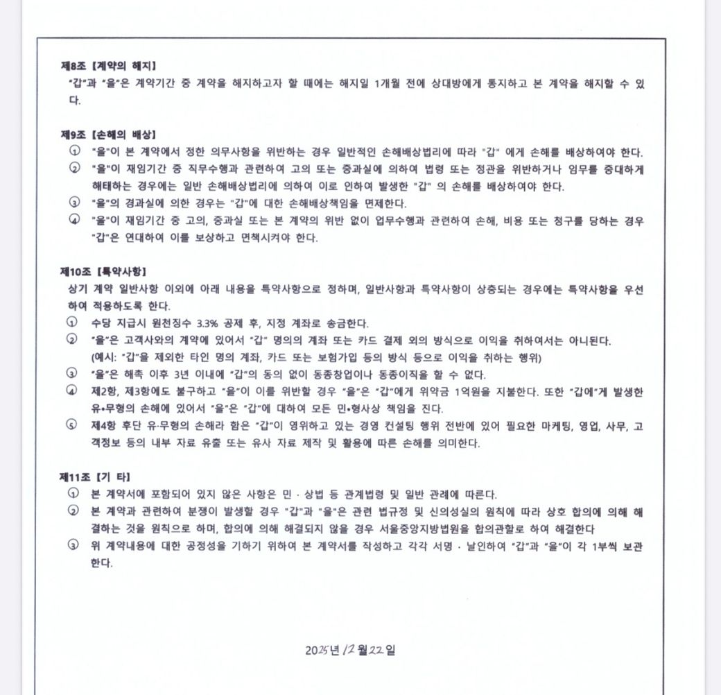 계약서 4조 3항에 따라 돈 달라고 다시 카톡함