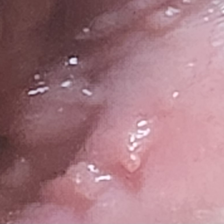 점막에 위치해있고 주변조직과 색이 비슷하며 균질한 모양을하고 있습니다.