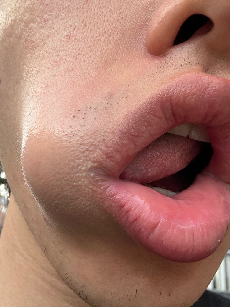 입술이 튼거같은 느낌이 들고 조금 빨간 느낌입니다헤르페스일 가능성이 있나여?? 양쪽 입술이 이럴 가능성도 있나요??