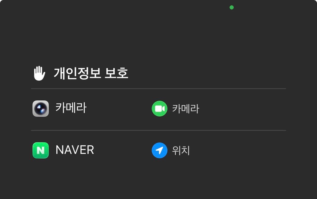 아이폰의 초록색 점은 카메라가 활성화되었을 때 나타나는 일종의 보안 신호등이에요. 카메라를 직접 켜지 않았는데도 뜬다면 아래 순서대로 확인해서 범인을 잡아보세요.