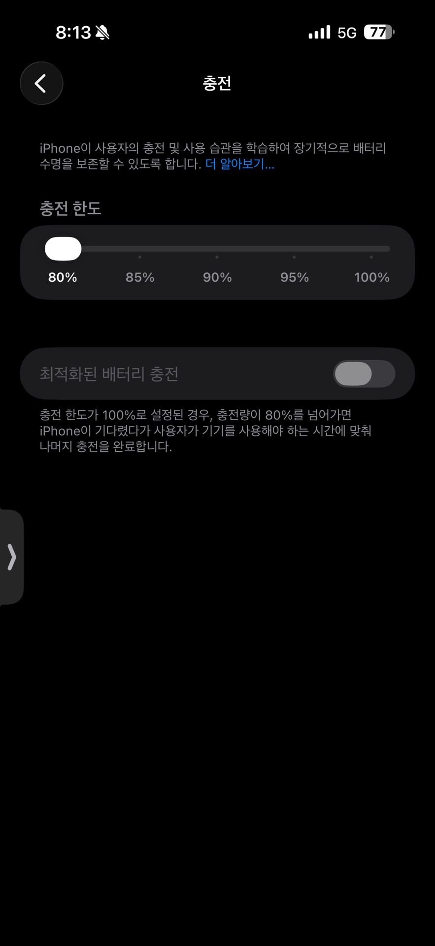 스마트폰을 오래 사용하다 보면 배터리 수명이 점점 줄어드는 것 같은데, 배터리를 조금이라도 오래 사용할 수 있는 방법이 있는지 궁금합니다. 예를 들어 완전히 방전시키지 않는 것이 좋다거나 20~80% 사이로 충전하는 것이 좋다는 이야기를 들은 적이 있습니다. 실제로 배터리 수명을 늘리는 데 도움이 되는 충전 습관이나 설정 방법이 무엇인지 알고 싶습니다.