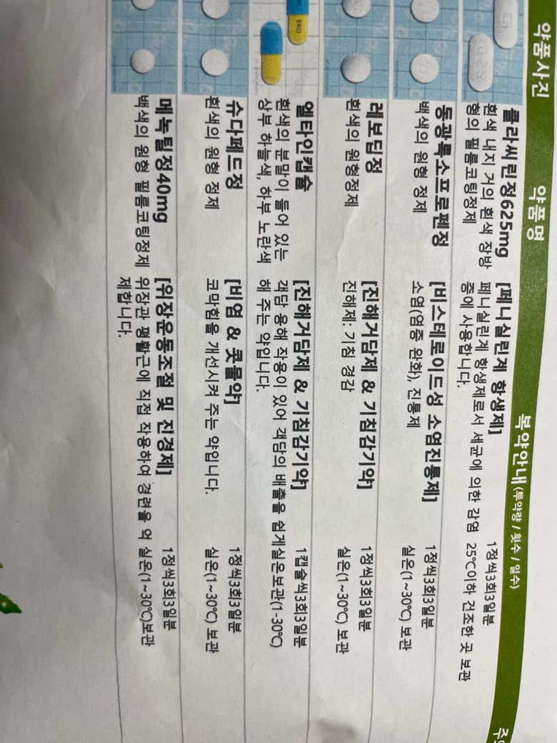 클라씨린정 / 동광록소프로펜정 / 엘타인캡슐 / 슈다페드 / 메녹틸정