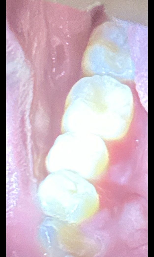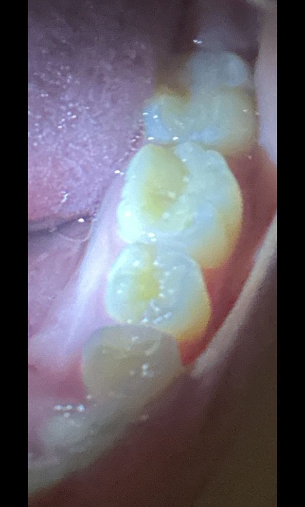 일단 사진상으로 보기에는 충치가 보이지는 않습니다만 방사선사진을 찍어봤을 때 눈에 보이지 않아도 충치가 있을 수는 있습니다.