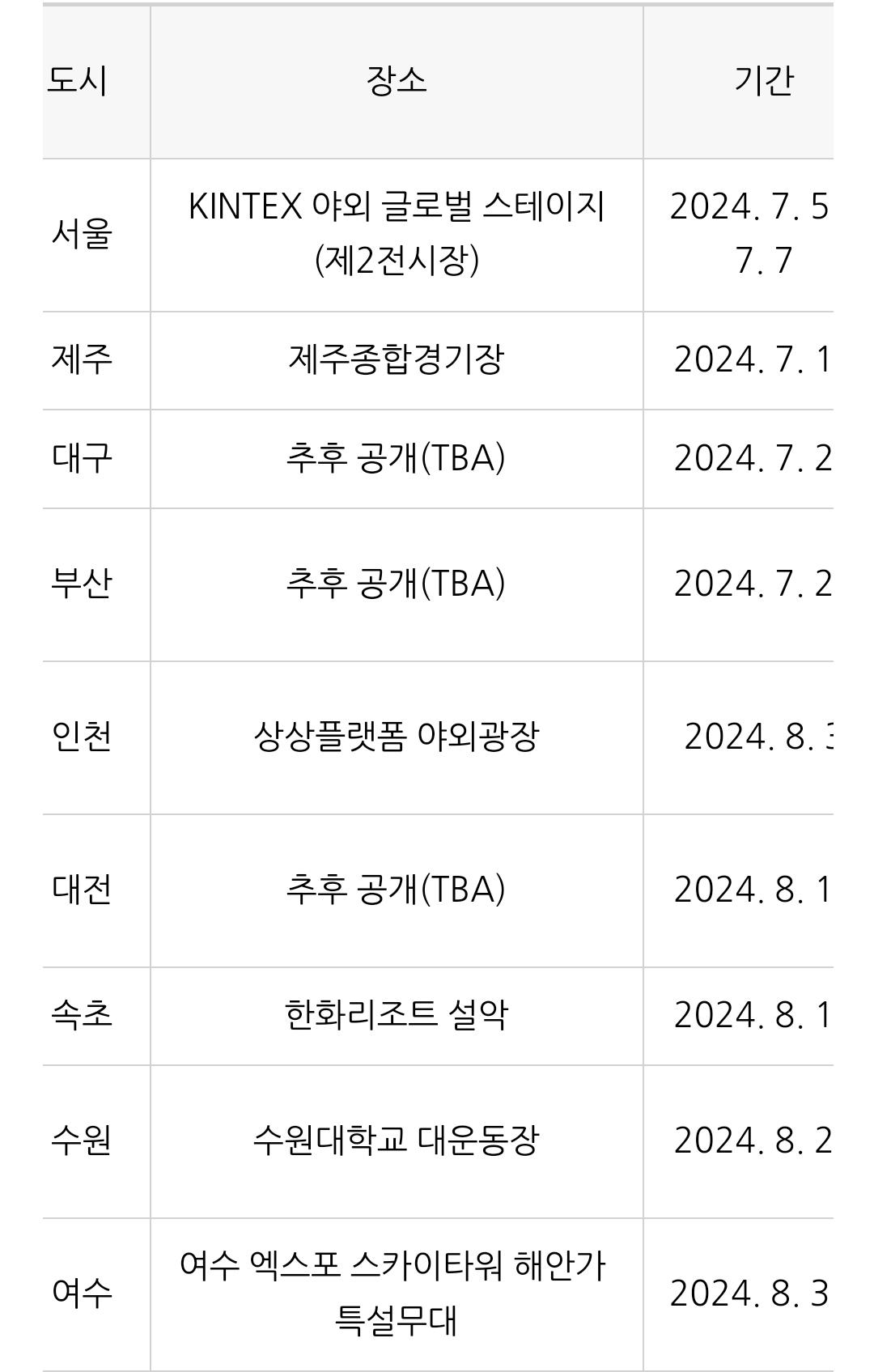 서울에서만 3일간 열리고, 다른 도시들은 하루씩 행사하구요.