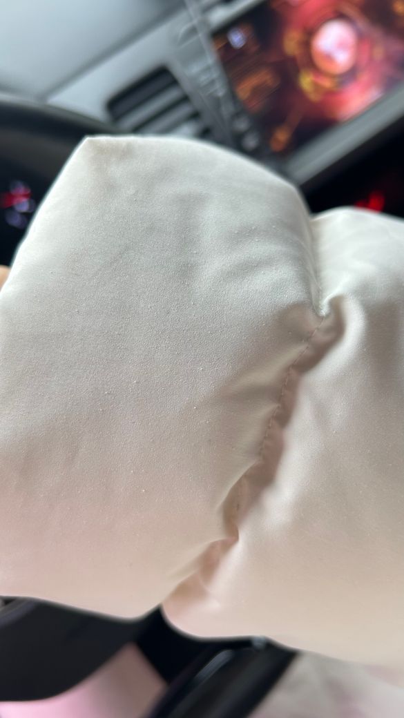 패딩겉부분이나 속에 든 소재가 삐져나와 보풀처럼 살짝 떨어져 말려있는 것 같습니다. 얼마 안 입으셨다고 하셨으니 보관 방법에 문제가 있던 것일 수 있습니다.