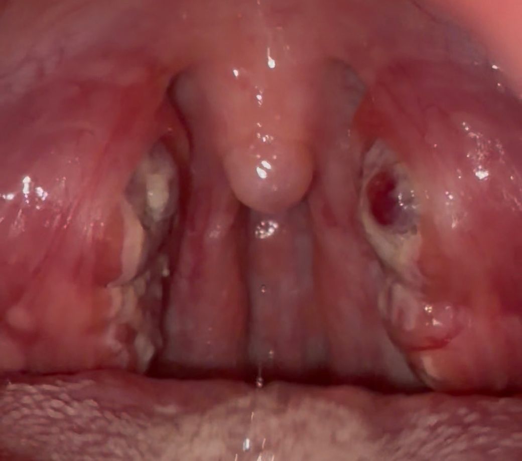 편도염 양상이 있어보입니다. 항생제와 적극적인 보존적 치료 요한다고 판단됩니다.