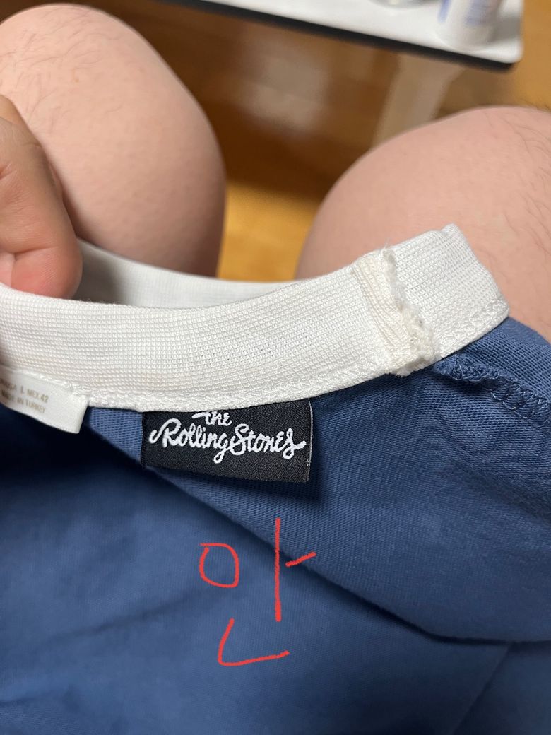질문은 사진과 같았고, 제 티셔츠 안쪽 재봉된 부위도 같이 올립니다.
