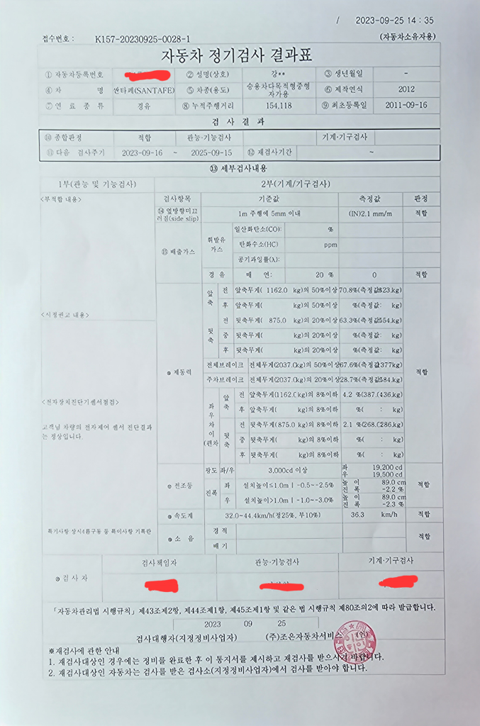 주행 안전성 및 배기 가스에 관해 체크합니다.
